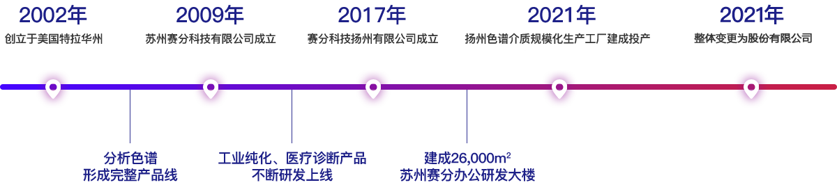 賽分科技有限公司(Sepax Technologies, Inc.)于2002年在美國特拉華州成立,致力于開發(fā)和生產(chǎn)用于生物大分子等藥物分離純化的液相色譜材料。歷經(jīng)二十年在色譜層析領(lǐng)域的深耕,賽分科技已發(fā)展成為一個(gè)集研發(fā)、生產(chǎn)和全球銷售為一體的實(shí)業(yè)型企業(yè),全球客戶超5000家。公司主要產(chǎn)品為色譜層析介質(zhì)、液相色譜柱,為全球生物制藥企業(yè)提供從藥品研發(fā)、臨床前(Pre-IND)到臨床Ⅰ、Ⅱ、Ⅲ期、生產(chǎn)以及質(zhì)控全周期全流程分析色譜和工業(yè)純化解決方案。